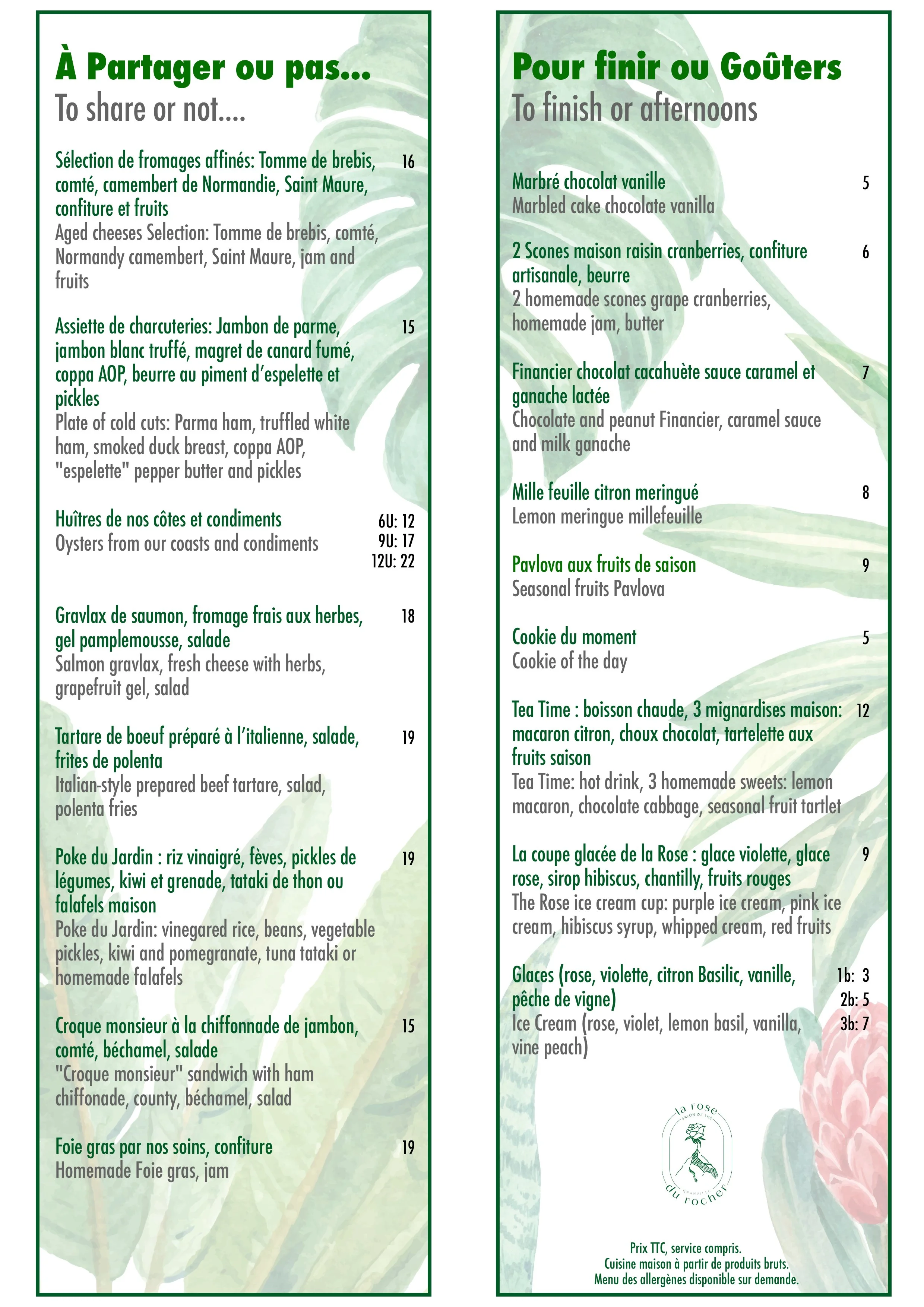 Gouter / Snack service 3:00 p.m. à / to 5:30 p.m.